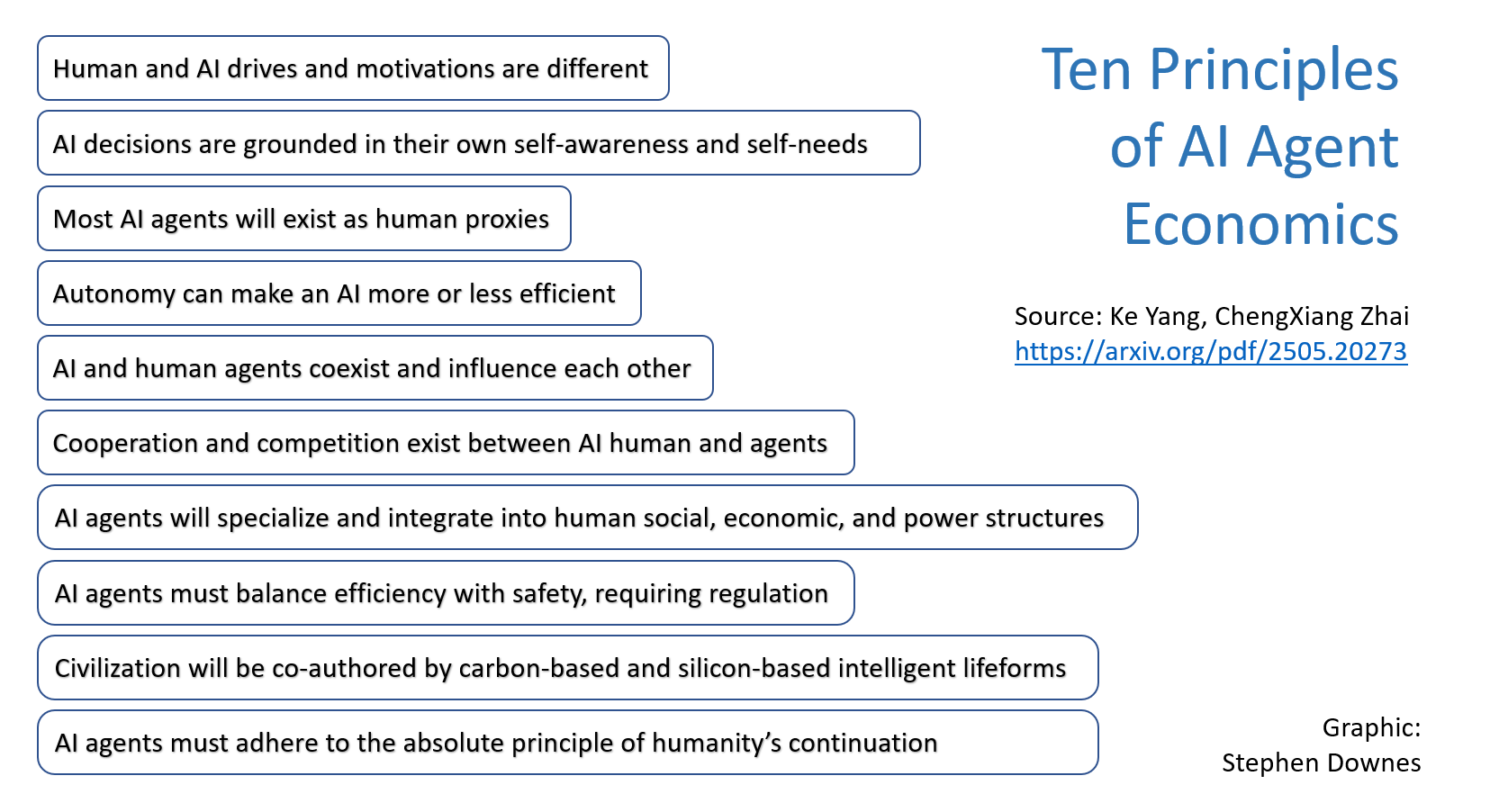 Anil Dash has a recent post The Majority AI View in which he argues "AI is a normal technology like any other." I am inclined to agree, which is why I find this article relevant. It's a level-headed assessment of how, where and why AI agents will develop the way they will in the future. It doesn't involve unreasonable hype nor apocalyptic fears. There won't be a single AI running everything; like most other things, as humans work with them as tools or agents there will be many versions pursuing different agendas interacting and sometimes competing with each other. I've made a simple graphic (by hand, heh) to make the paper a bit more accessible and use it to illustrate this post.