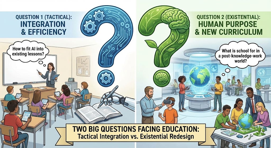 I think the basic premise is right: "there are two boxes — How to Use AI in the current curriculum and how to change the curriculum so school is still relevant"... and the important box is the second box. But Stefan Bauschard offers two statements on the second that seem to me to be just wrong. The first is this: "future success in work or entrepreneurship will be determined by how well you manage agent teams." Why would we need to manage agent teams? Let the AI do that. All we need to do is tell the AI what we want. Second: "the most important question facing society is who gets to decide what AI does." Why does everyone refer to 'AI' in the singular. Just are there are many people - billions, even - there will be many AIs. The real question for the future is: how many of those billions of people get to benefit from an AI? If it's less than 'billions of people' we have hard-wired an unsustainable inequality into society, with all the harm that follows from that.