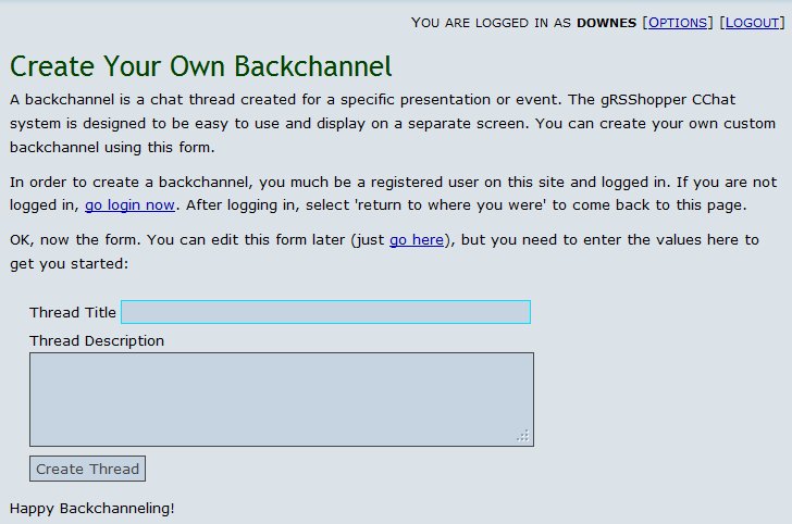 Select 'Create a New Backchannel' to make a new backchannel: http://www.downes.ca/create_backchannel.htm It looks like this: