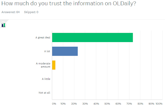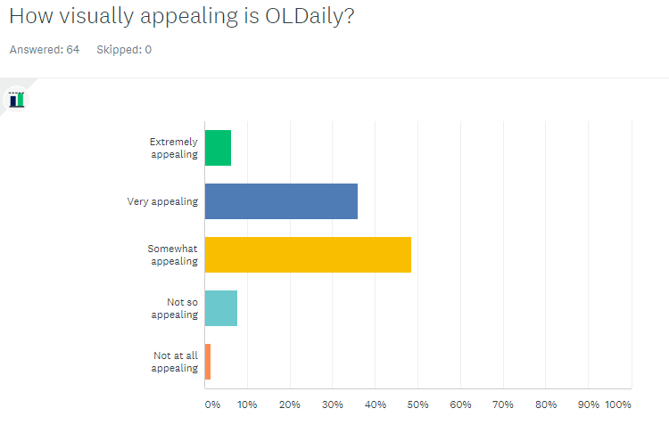 The next part of the survey asked how you would improve OLDaily. Many people said it was fine as it was (awww, shucks) but a number of thoughtful comments gave me pause to reflect. Let me summarize some of the common themes (where a 'theme' might actually be one person).
