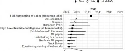 This paper (38 page PDF) proclaims itself as "the largest survey of its kind" and reports on a survey of "2,778 researchers who had published in top-tier artificial intelligence (AI) venues, asking for their predictions on the pace of AI progress and the nature and impacts of advanced AI systems." If I had to characterize them, the answers are, I would say, 'rapid', 'advanced' and 'mixed'. Also, "respondents were asked when four specific occupations would become fully automatable: 'Truck driver,' 'Surgeon,' 'Retail salesperson,' and 'AI researcher'." The answer? Not long. Have we changed the way we educate people for a world in which this takes less than 40 years? Nope.