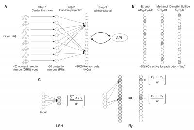 This article (4 page PDF) demonstrates a relationship between the way flies smell things and the way similarity-based search works in neural networks. This is important because similarity is arguably a cognitive foundation for artificial intelligence, and correspondingly, human intelligence. The flies accomplish this through something like tagging - but the tags demote not only the specific scent, but also some information about the scent's relation to other scents in a vector space.