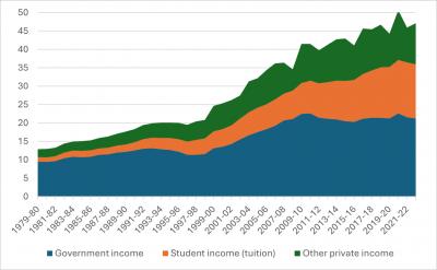 The diagram that opens this article is of particular interest to me because it starts almost exactly when I started university - the fall of 1981. As I've described it in later years, there was a thin slice of time in 1980s Alberta where someone like me - with a poor academic record and no money - could get into university, a window that closed soon after. Much of my time as a student journalist and leader in the years that followed were focused on the issue of accessibility. I still consider it the key issue in education today. And now, as we approach a worldwide higher education funding crisis, I wonder what people like me will do in the future.