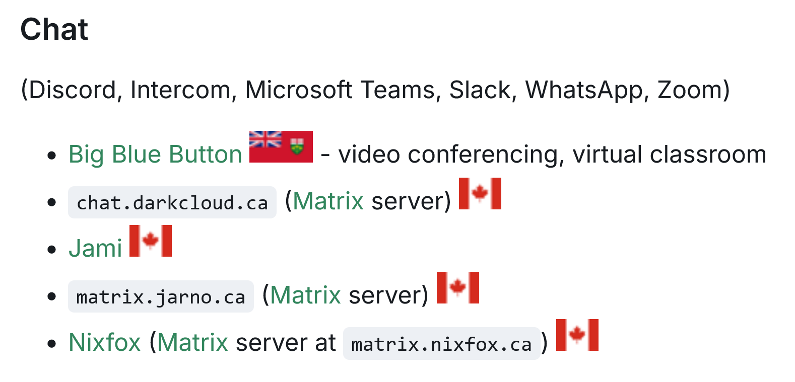 If you are Canadian and looking to find alternative online services to replace the (usually) American services you are already using, here's a comprehensive list - everything from hosting to cloud to domain registration to payments and password management.