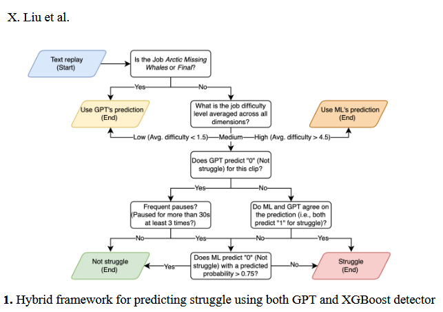 Raw interaction data, which records what a human does in an educational game, is hard to read. This is as true for large language models as it is for humans. So this project tests converting the raw data to text, which the AI can read. This paper (8 page PDF) reports on a test to see whether r GPT-4o can detect moments of struggle in the data. Plain machine learning "performed better when struggle followed measurable patterns, such as frequent or prolonged pauses between actions," but a combination of ChatGPT and machine learning worked well.