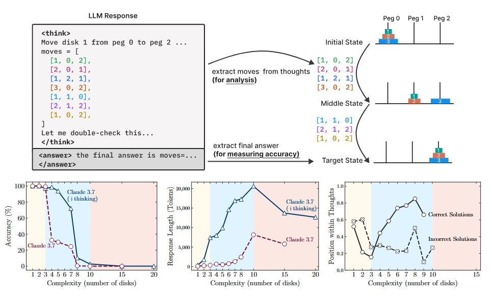 I referenced this paper (30 page PDF) from Apple in passing recently, but given how widely it was cited, it deserves its own listing. Recent large reasoning models (LRM), the authors argue, "have limitations in exact computation: they fail to use explicit algorithms and reason inconsistently across puzzles."