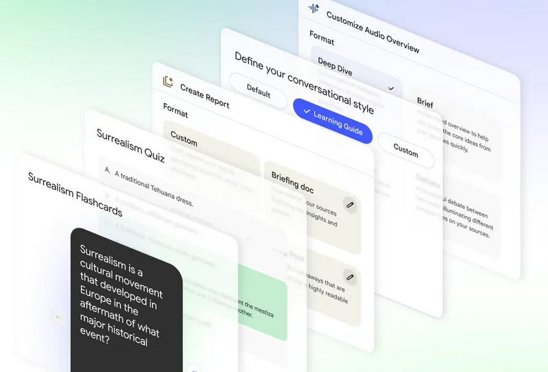 Here's how Google's AI summarizes its own article on Notebook LM (I just clicked on the 'summarize this page' link on the page): "NotebookLM now offers new features to help you actively learn and master subjects. You can now create flashcards and quizzes from your documents, generate tailored reports, and deepen understanding with the new Learning Guide. Also, explore trusted academic content from OpenStax and listen to your sources in new ways with Audio Overviews." Except for the OpenStax materials, which were available long before Notebook LM, I can't see any of these resources helping people learn in any meaningful way.