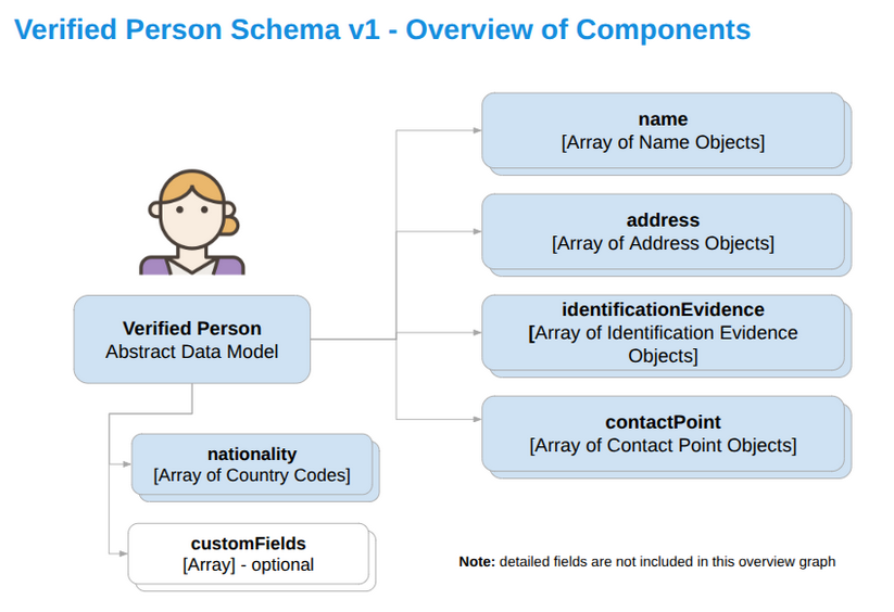 We can think of distributed identity as blockchain networks of people, not coins. Specifically, a 'decentralized identifier' (DID) is composed of a "Unique ID URI string and PKI metadata document format for describing the cryptographic keys and other fundamental PKI values linked to a unique, user-controlled, self-sovereign identifier in a target system (i.e. blockchain, distributed ledger)." This document defines the approved specification for credential schemas version 1.0 from the the Decentralized Identity Foundation. Use cases are mainly in "financial services, but can also be used in telecommunications, and any sector requiring identity verification for customer onboarding, transaction verification, and regulatory compliance, enabling streamlined and standardized data handling for 'Know Your Customer' (KYC) procedures."