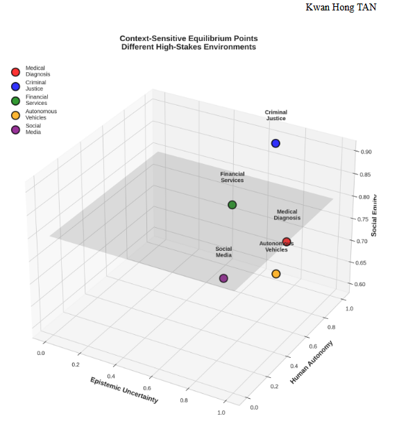 There's a ton of good thinking in this paper (173 page PDF), a thesis proposed by Kwan Hong Tan at the Singapore University of Social Sciences. Most of the heavy lifting is done in the first 30 pages or so, and especially in chapter three, where the Dynamic Equilibrium Theory (DET) is introduced to describe the concept of fluctuational ethics - "the idea that ethical AI systems must be designed to handle not just uncertainty in data or predictions, but uncertainty in the ethical landscape itself." This is a position I also advocate, though it's a hard sell. "Traditional regulatory frameworks assume that compliance can be achieved through adherence to fixed rules and standards. However, Dynamic Equilibrium Theory demonstrates that ethical requirements in AI systems are inherently dynamic and contextual, requiring regulatory approaches that can accommodate continuous adaptation." There's much much more in this as Tan analyzes fluctuational ethics through case studies, describes the mechanics in prototype computer code, and traces in exhaustive detail the implications of this finding in policy and methodology.