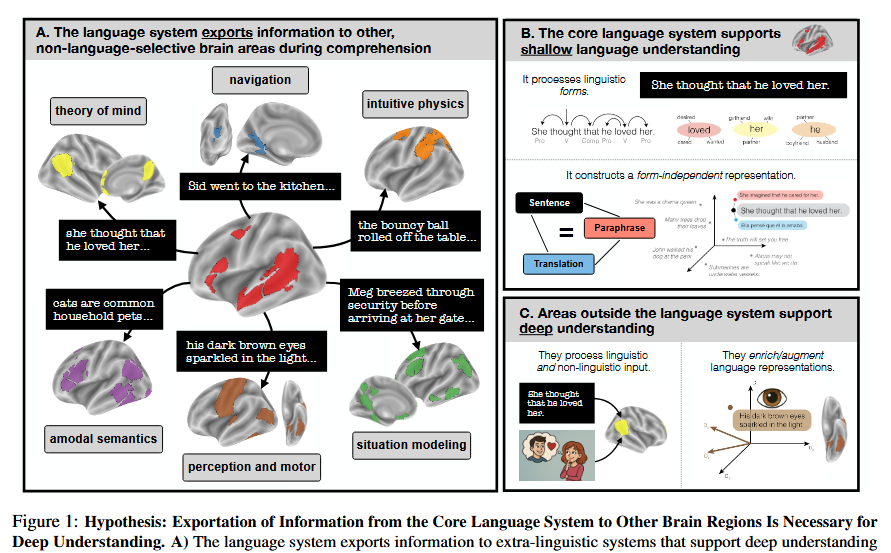 I have mixed feelings about this paper (17 page PDF). On the one hand, the turning point for my efforts to learn French can when I began to apply frames to what I was trying to say (so I could decide things like tense and gender once and then not worry about it). On the other hand, I think of fMRI as a modern form of phrenology. What I can derive from this is the idea that language learning isn't just about language. As the authors put it, "a deep understanding of language... requires the exportation of information from the brain's core language system to other cognitive and neural systems that can build models." It's not, they say, that the whole brain is responsible for language processing, it's just that language processing depends on (shall we say) other systems that have multiple uses.