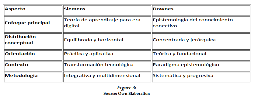 I ran across this paper (9 page PDF) completely by accident while searching for something else but unsurprisingly it captured my attention. It's an odd mix of Spanish and English text published in an obscure journal but fortunately I read enough Spanish to follow along and I enjoying the compelling way the authors looked at George Siemens's and my individual contributions to connectivism and then the way they blend to create the theory as a whole. I especially liked the "integrated epistemological foundations" that summarize the combined contributions as a unified entity.
