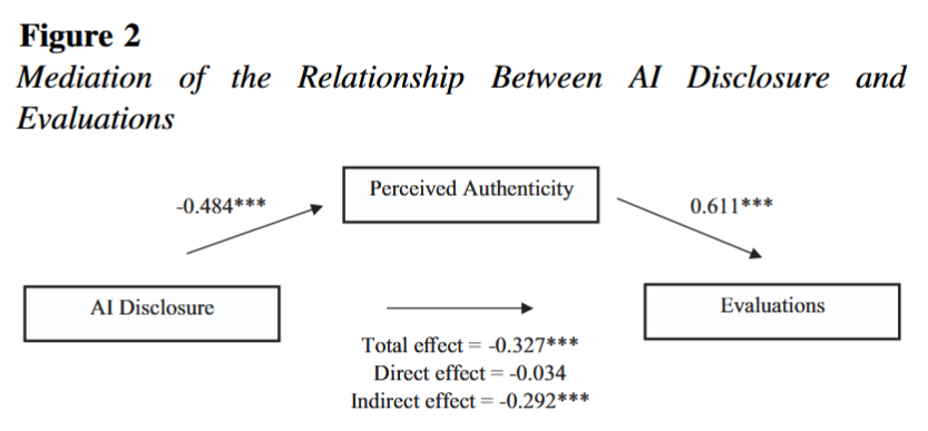 An "emerging body of research suggests that consumers stand to garner enjoyment and value from AI-generated creative goods (only if) they remain unaware that AI was involved in the creation process." The suggestion here (21 page PDF) is that, if people are aware something was created by AI, they value it less. "This AI disclosure penalty is remarkably persistent, holding across the time period of our study; across different evaluation metrics, contexts, and kinds of written content; and across interventions derived from prior research aimed at moderating the effect." What interests me is whether this effect will persist over time, or whether it is a product of a population to which AI is brand new, and not part of the background environment. Via Jonathan Boymal.
