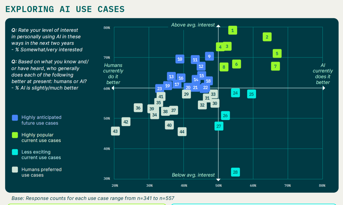 I came across this (53 page PDF) while doing some desk research and though it's from last year (and nominally behind a spamwall) I thought I'd pass it along. The real value of this report is the 44 use cases for AI in research that it lists and organizes according to how likely and how useful they are (with a number falling into the 'humans preferred' category). There's also what they call the "Wiley AI Framework" describing what people should act on, watch, or envision. It's also interesting to look back on their perspective from about twelve months ago: "This year, GenAI enters the Trough of Disillusionment as organizations gain understanding of its potential and limits. AI leaders continue to face challenges when it comes to proving GenAI's value to the business." The survey does reflect that for 2025, but for 2026 I think we're already seeing significant advances.