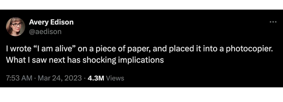 This article begins with the question, "How many Reddit posts does it take to learn to read?" The answer "all of them" is intended to show the difference between human learning and AI learning. The intent is to show '200 lines of Python code does not understand anything'. It's a bizarre supposition, to be sure. But in response I invite the reader to consider the same questions asked about humans. Do the chemicals and interactions in a human neuron 'understand' anything? If given only Reddit posts, would it not take a lot of posts to learn how to read? That's the problem with these human-AI comparisons: we assume these almost-magical human abilities that in reality stem from (a) a wider range of experience from all our senses, and (b) a lot of interconnected neurons. The proposal that human understanding is fundamentally different does not follow from arguments like this. Yet people keep making them.