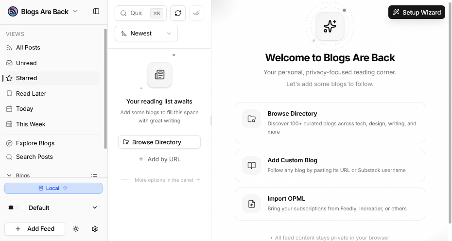 This is yet another RSS reader (YARR) that I'm mentioning here for a few reasons. One is the beautiful design, which shows what people can do these days. Another is the way feed data is stored locally (with an option to sync) which is how I built my own (comparatively very ugly reader). And third was the use of Turbopack, "an incremental bundler optimized for JavaScript and TypeScript, written in Rust, and built into Next.js", which should serve as a reminder of how much web infrastructure is available to people now that they can use AI without spending years (literally!) learning how to make it work.