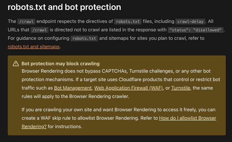 Cloudflare's announcement caused a stir in the socials today. "You can now crawl an entire website with a single API call using Browser Rendering's new /crawl endpoint, available in open beta. Submit a starting URL, and pages are automatically discovered, rendered in a headless browser, and returned in multiple formats, including HTML, Markdown, and structured JSON." To be clear, web scraping applications have been around for a long time (it was the first thing anyone wrote back in the 1990s!) with services like Firecrawl and Elastic (try). The issue is that Cloudflare has marketed itself as a service that prevents web scraping. Still, as Ian Kerins argues, the Cloudflare scraper "doesn't bypass anti-bot systems." However, "What this '/crawl' endpoint really is though, is another step in Cloudflare's broader push toward signed agents and a 'pay-to-crawl' internet."