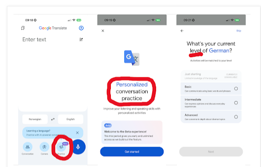 You'll find this new tool in the mobile version of Translate, not the desktop version (I checked). For me the hardest part of language learning is understanding what speakers are speaking (my reading comprehension in a number of languages is way better). This tool is great for listening practice. I found it similar in many ways to Duolingo, but there's more user control over the exercises and activities (for example, 'make it harder' buttons). What it really needs, though, are voice controls. Then I could practice my Spanish and French while riding my bike. The tool, currently free, is in beta.